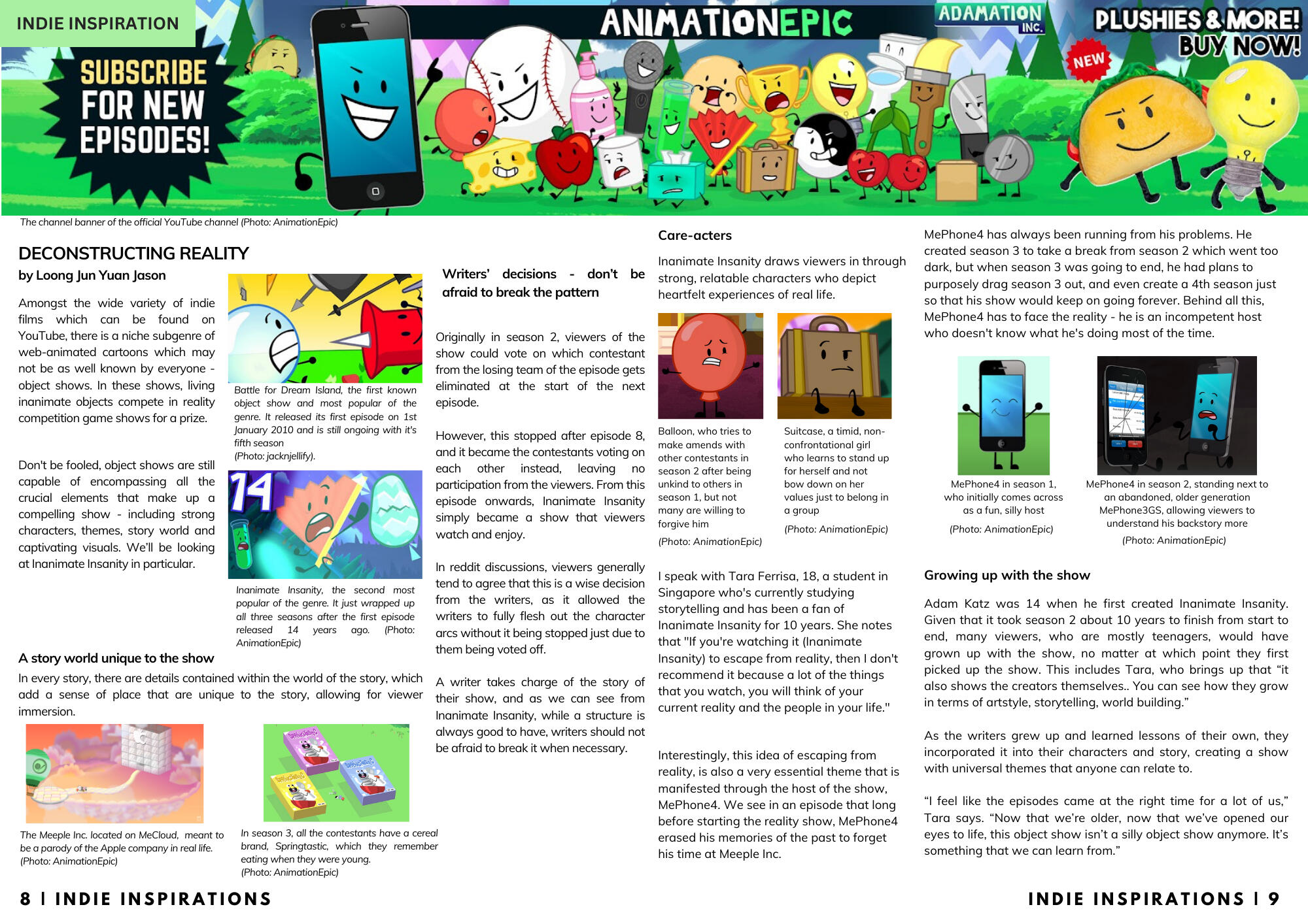 For a magazine assignment, I wrote a piece about one of my favourite shows - Inanimate Insanity! I also designed this particular page. Check out the full magazine (centred around screen content) which my team made below: